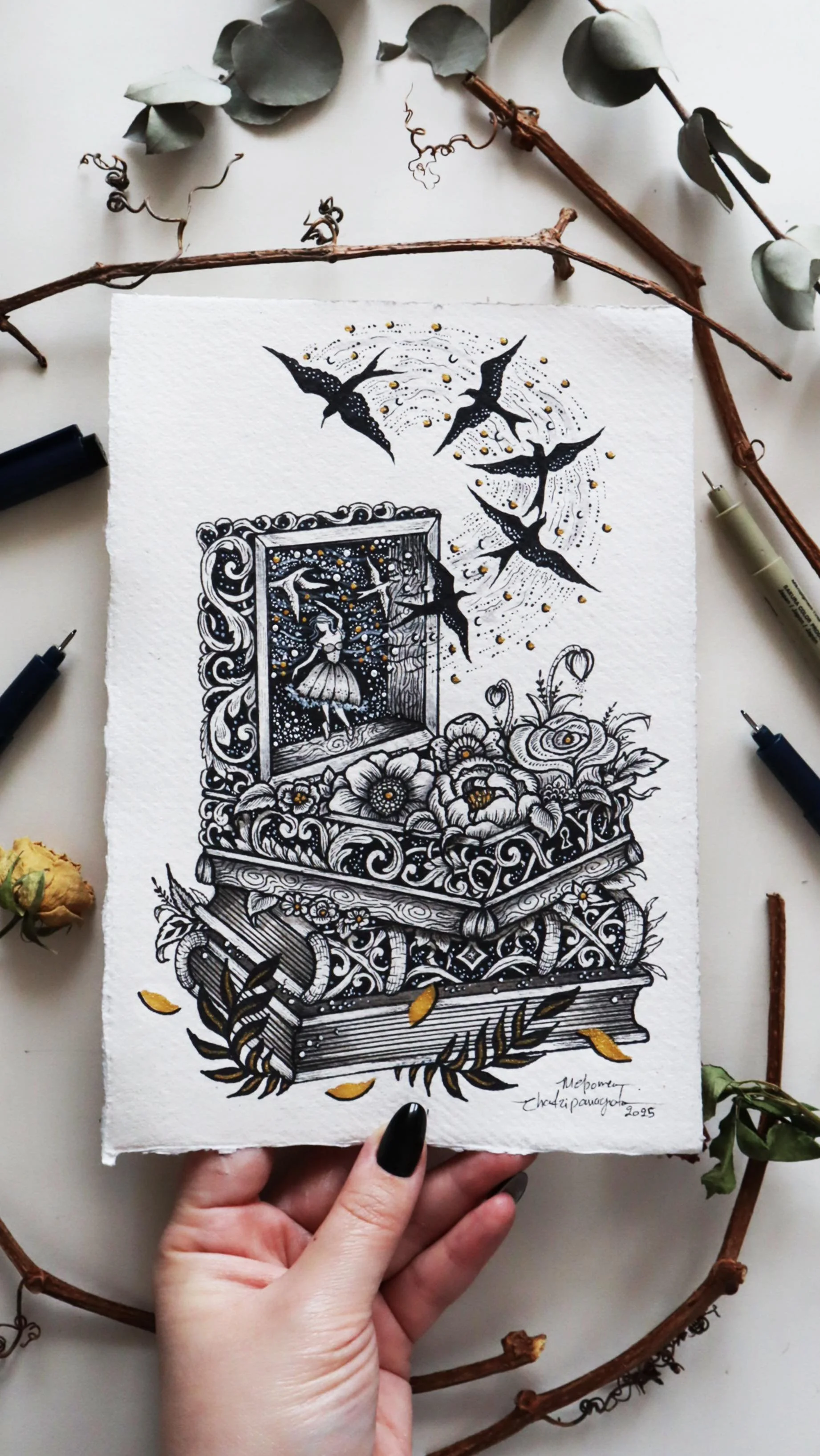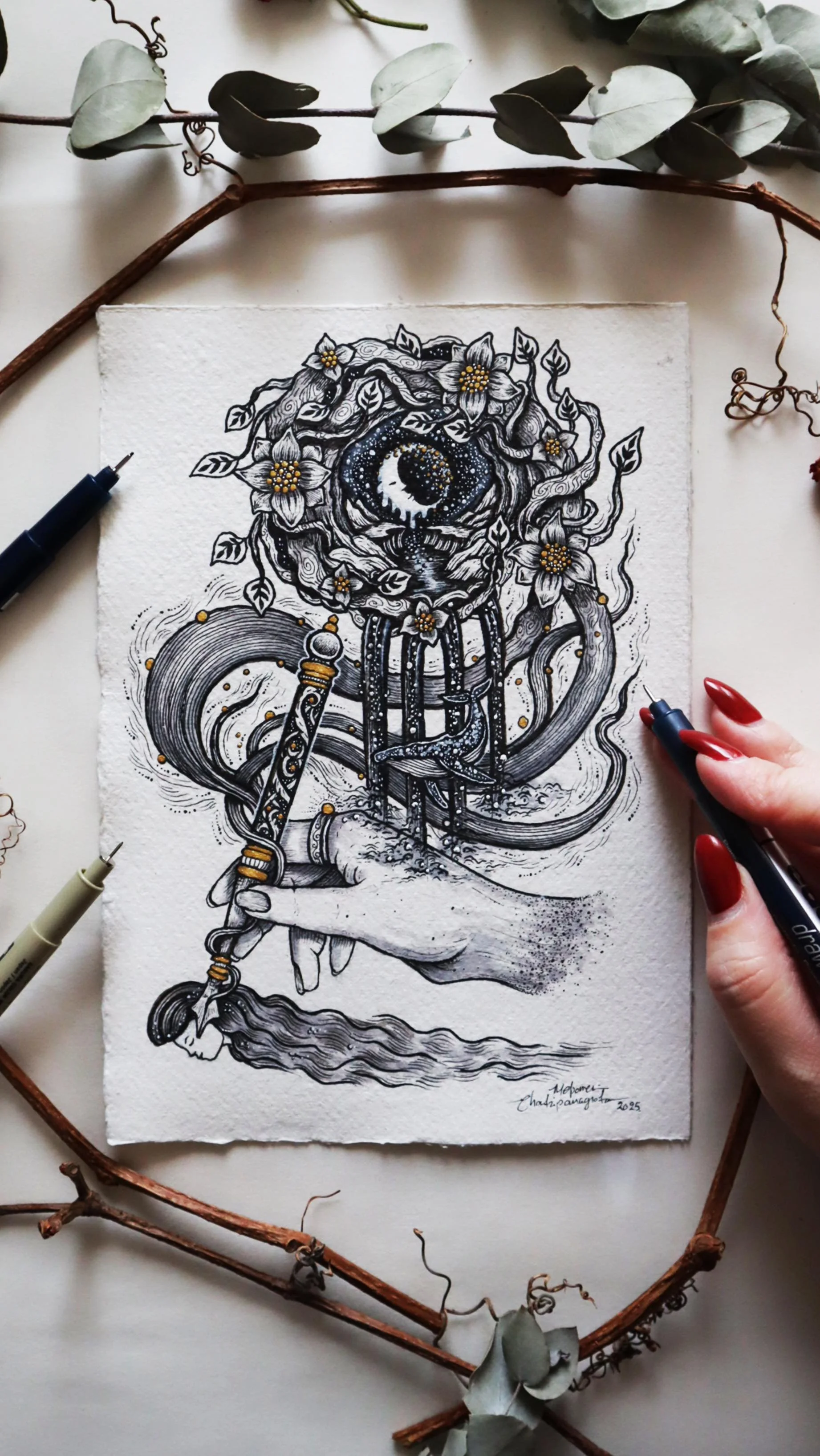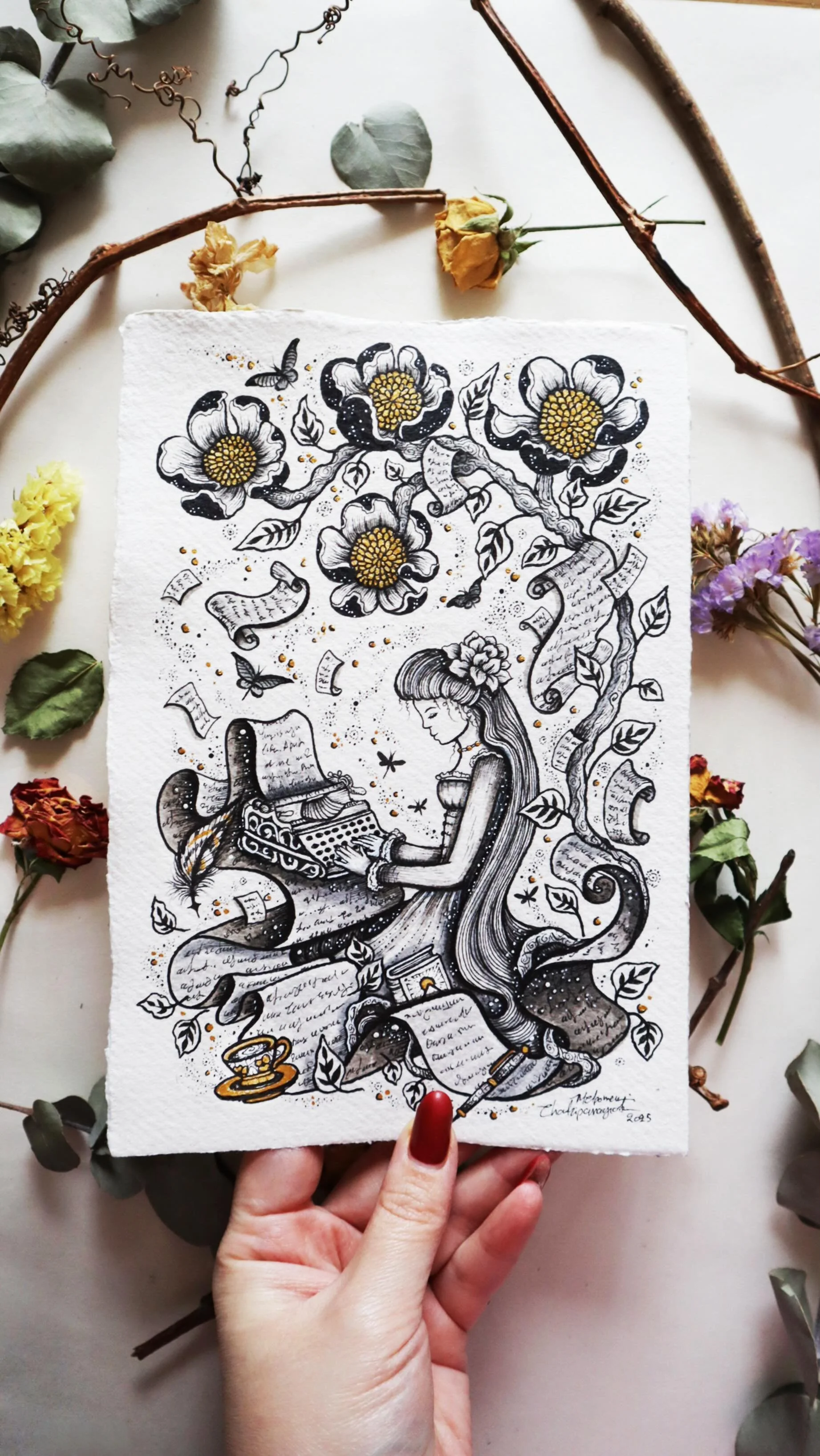 Melpomeni is an independent illustrator and Graphic Designer working professionally for over 10 years, specializing in detailed illustration works, typography, editorial works, book covers and more. Her work is characterized by intricate details and a harmonious fusion of natural elements with imaginative concepts. With a profound appreciation for the natural world, often weaving flora and fauna into fantastical scenes.