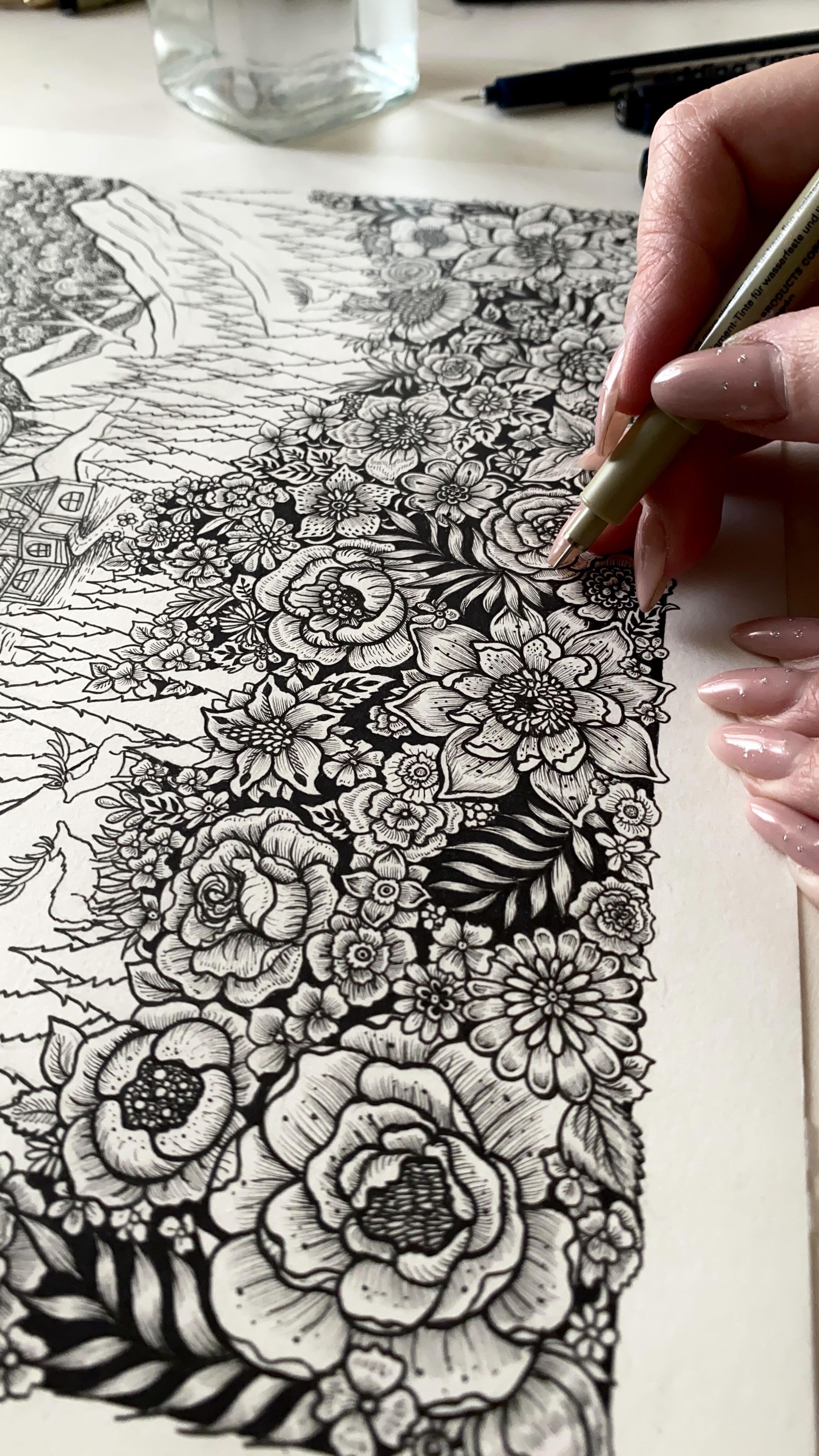 Take a look inside my new book ‘‘Flower Fantasy’’ a coloring journey through fantastical florals.